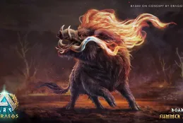 This creature reaches almost double the physical size of a regular Daeodon. The primary gameplay mechanic focuses on hybrid resource extraction and combat. Massive tusks allow for efficient tree felling. The tactical advantage lies in a thermal ignition mechanism: When agitated, the fur and tusks catch fire (which some may rightly scream about - fire damage).